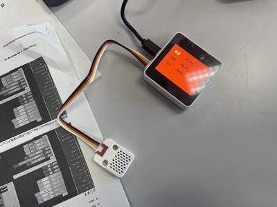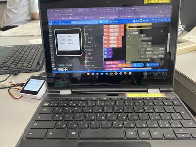 M5Stackという装置を使って、温度や湿度、気圧などが計測できるようにプログラミングを行いました。