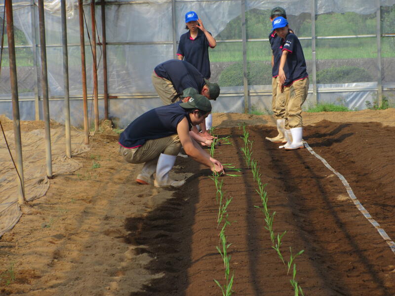 「野菜」の夏の実習では、メロン、小玉スイカ、トウモロコシの定植を行いました。