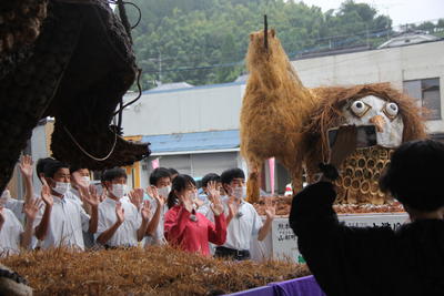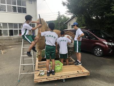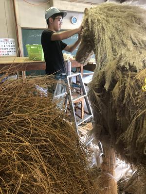 林業科学科1年生が製作している八朔祭の「大造り物」は、完成が見えてきました。