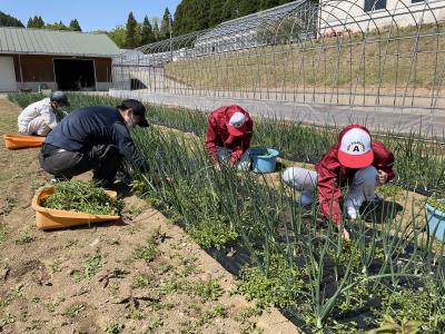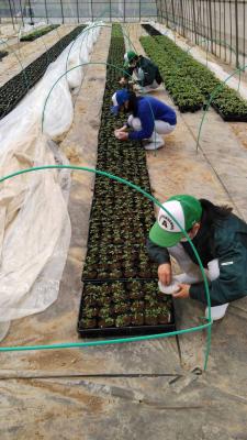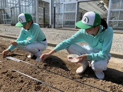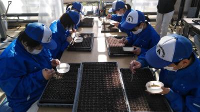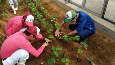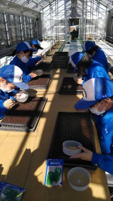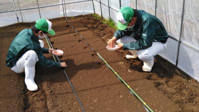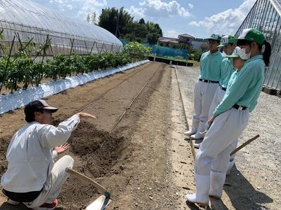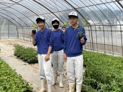 1年生の総合実習では、クラスを3班に分けて「野菜」「草花」「農業と環境」に分かれて、農業実習を行っています。