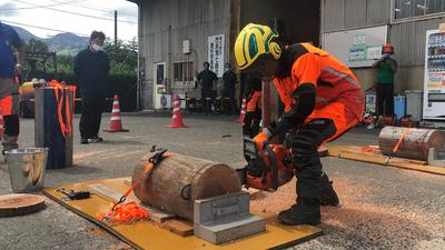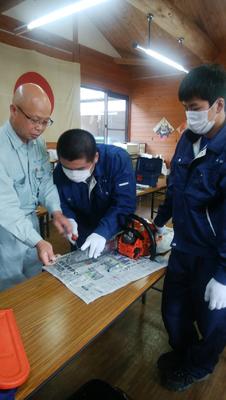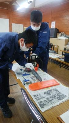 チェーンソーの構造や仕組み、目立の方法についての実習を行いました。