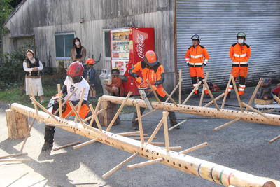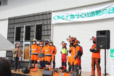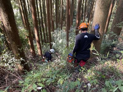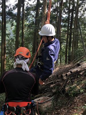 午後は、御船町の国武林業で特殊伐採に関する研修をしました。