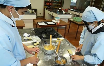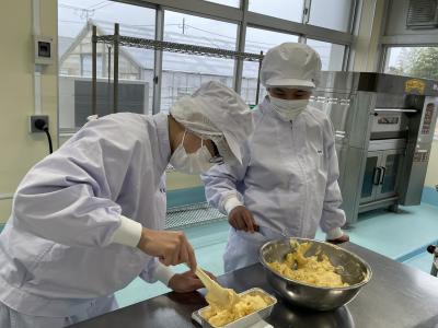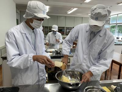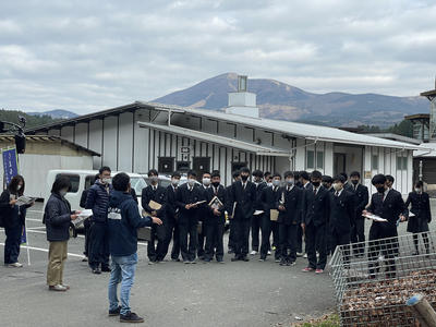 食農科学科にて実習中。食農科学科3年のHRに入っています。