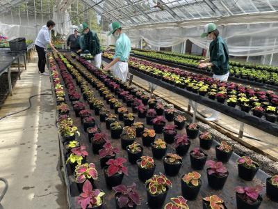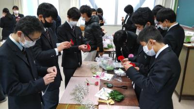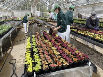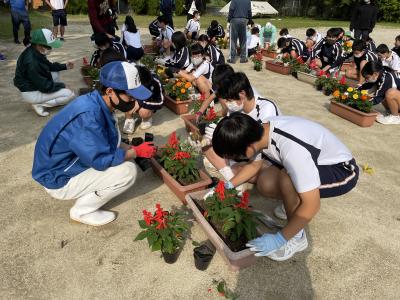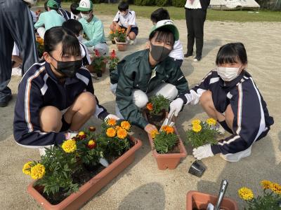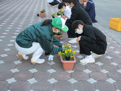食農科学科3年の草花専攻の授業で、正門近くの花壇に花を植えました。