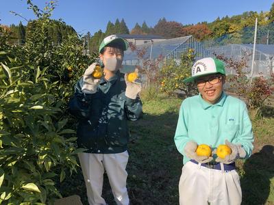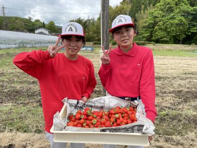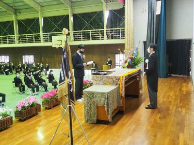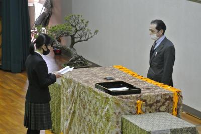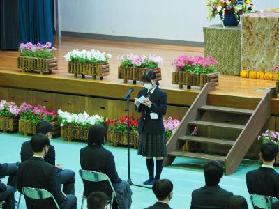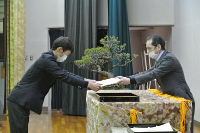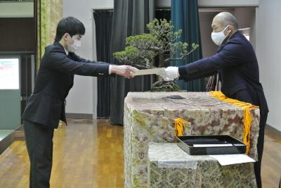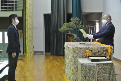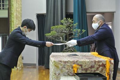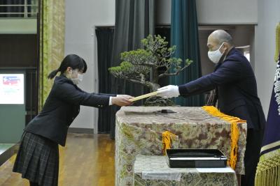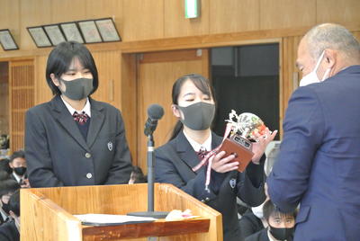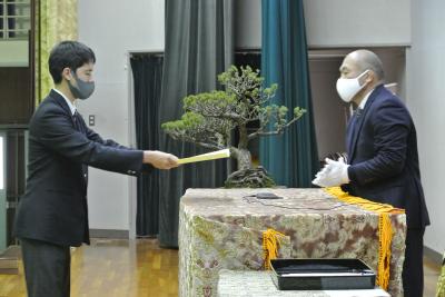 農業クラブ県連会長A3阪本千佳さんと校内会長F3岩崎晃大くん