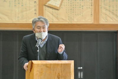 このボランティア活動を始められたきっかけやこれまでの取組、現在の状況を話して頂き、生徒も真剣に聞いていました。