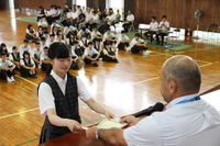 会場の古町小学校での出発式では、本校の取り組みについて、紹介することができました。
