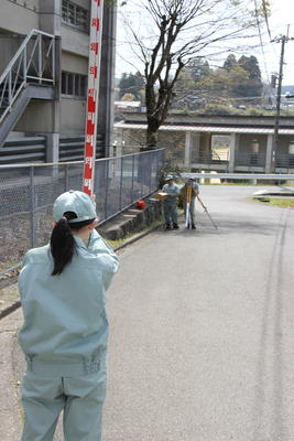 緑科学科・林業科学科 学校の高低差を測定”水準測量実習” 投稿日時 : 2019/04/17 食・生活コース 緑科学科・林業科学科では、土地の広さや高低差などを測定して、道路や建物の建設、地図の作成などに活用する「測量」の学習をしています。 今日は、緑科学科2年生が水準測量の実習をしました。 水準測量とは、「レベル」という測量器具を使用して、土地の高低差を測定する測量です。 教室で事前に学習した内容を思い出しながら、レベルを使って校庭の高低差を測定しました。 今日は、簡単に2点の高低差のみを測定しましたが、次回は、長い距離を測定する実習を行ないます。 Tweet {{options.likeCount}} {{options.likeCount}}