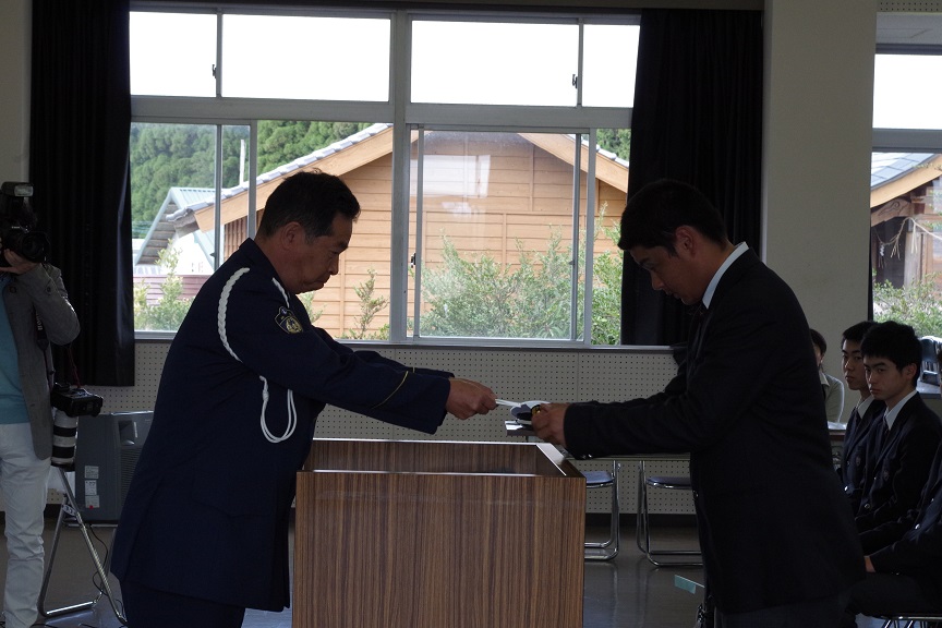 原動機付自転車免許交付式 投稿日時 : 2014/04/03 食・生活コース 4月2日(水)に新2年生を対象に原動機付自転車免許交付式が実施されました。 山都警察署の交通係長より、一人一人免許状を交付していただきました。 Tweet {{options.likeCount}} {{options.likeCount}}