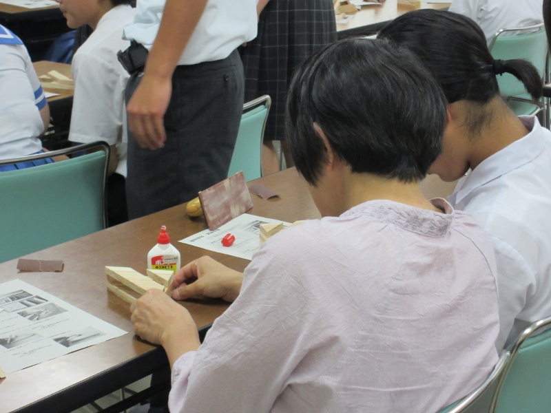 ふだんのこぎりを使うことなどあまりない中学生のみなさん…苦戦した人もいたようでしたが、立派に完成させることができました!