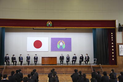 生徒も1mほどの間隔を空けて整列、全員がマスク着用で行う式典でしたが、