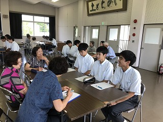 山都町いきいき大学受講生と食農科学科1年生の意見交換会 投稿日時 : 2018/08/17 農業科学コース 8月17日(金)に山都町いきいき大学の受講生25名が来校されました。学科紹介を食農科学科1年生で行い、意見発表を食農科学科2年二宮水菜さんが行いました。 その後は、班に分か「山都町の今と昔」というテーマで意見交換会を行いました。以前の山都町の農業や暮らしについてたくさん話を聞くことができ、大変勉強になりました。今回の意見交換会でお聞きしたことをまとめ、11月の文化祭で展示発表したいと考えています。 Tweet {{options.likeCount}} {{options.likeCount}}