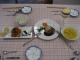 食農科学科のフードデザインを受講している3年生で担任の先生と副担任の先生をお呼びして食事会をしました。2時間という短い時間で供応食を作るのは大変でしたがよくできました。