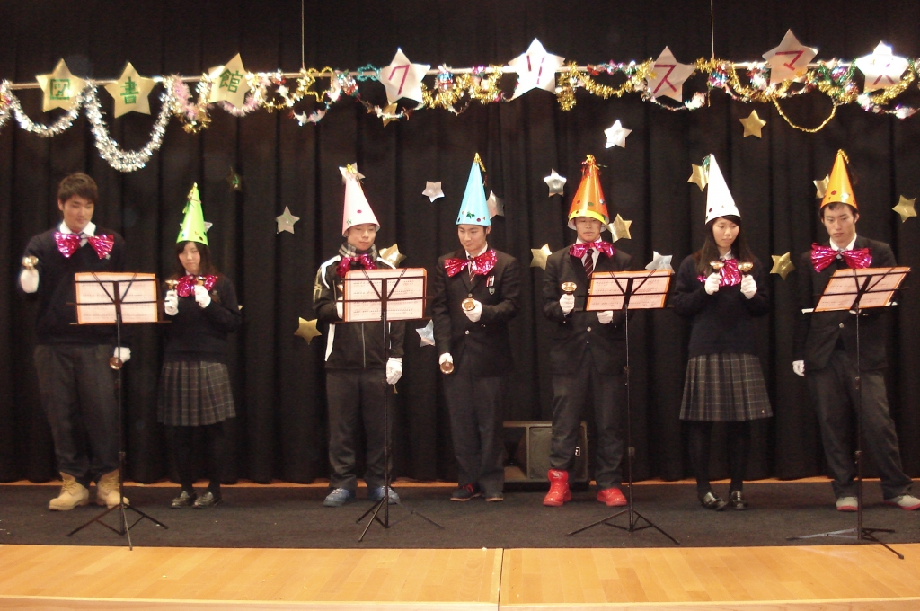 日本拳法部の生徒が参加し、下のようにハンドベルの演奏を行いました。