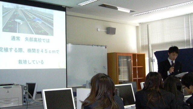 草花専攻と野菜専攻の生徒12名がそれぞれの取り組みを発表しました。