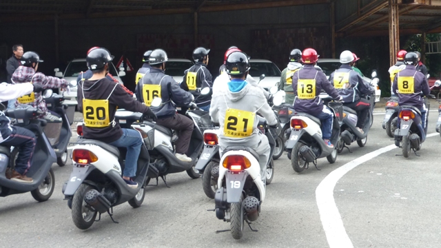 交通法規や運転技能等についての学科とバイクの乗り方などの実技に分かれ講習をしていただきました。実技講習では、エンジンのかけ方や運転姿勢、運転時の目線、バランス感覚など運転をしながら行いました。最初は顔を強張らせながら運転していましたが、段々と上達していました。