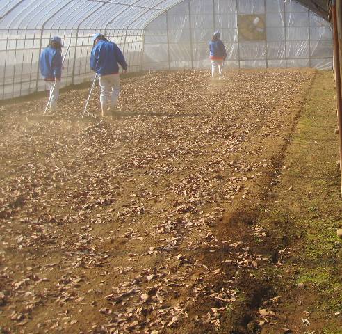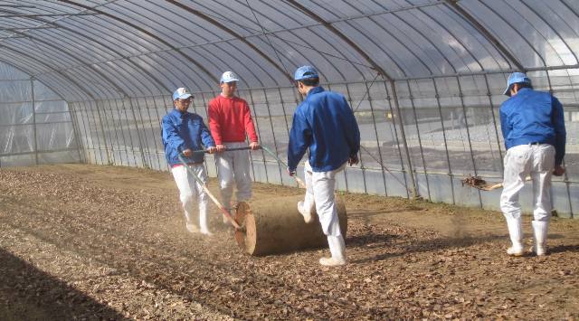 野菜の実習は、野菜苗の播種や育苗に向けて、ビニルハウスの整地と