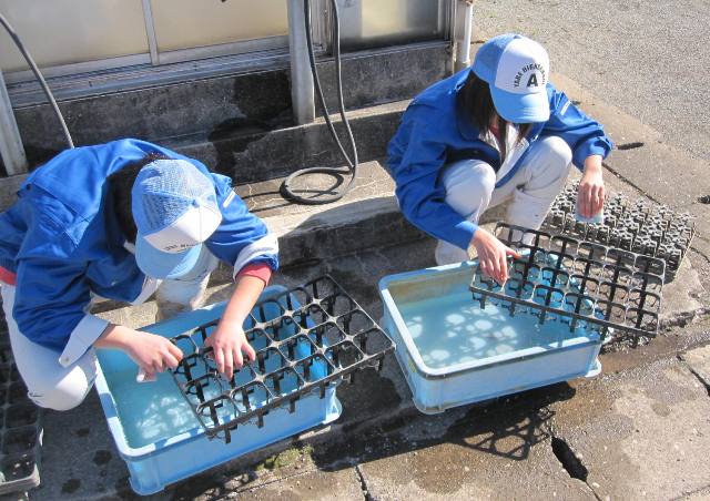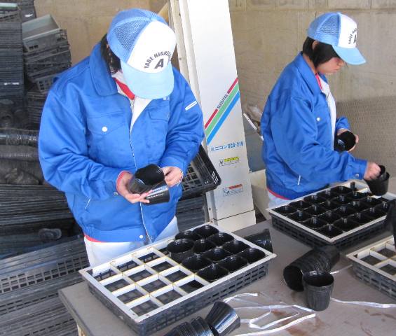 草花の実習は苗物を入れるトレイ洗いをしました。