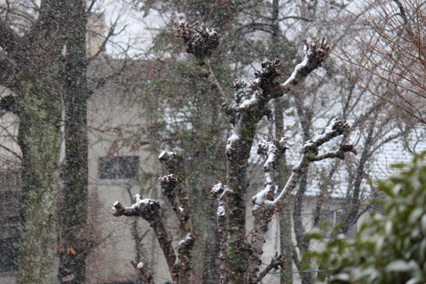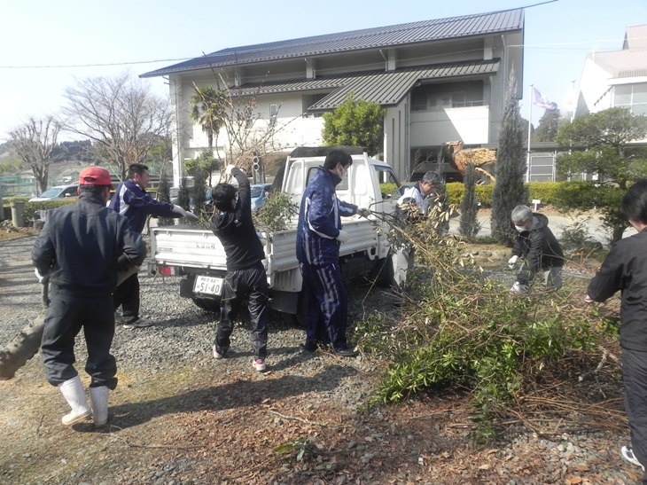 正門を中心とした樹木の剪定くずの片づけをし、卒業式前にきれいになりました。