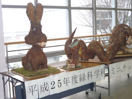 以前、製作したミニチュア造りものを校内(2階中央ホール)に展示しました♪