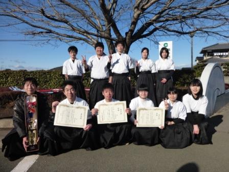 先日2月8日に第1回熊本県農業関係部活動交流大会弓道大会にて男子団体で矢部高校のBチームが優勝しました。