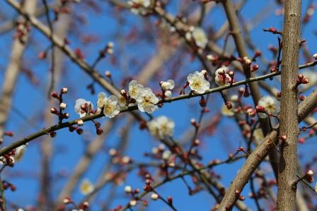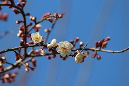 お梅さんの木が、ここ数日のぽかぽか日和で花を咲かせ始めました。