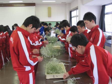 食農科学科では、卒業生のコサージュを作成しました。