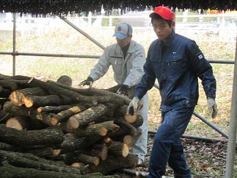 演習林から運搬してきたクヌギを本校のほだ場にきれいに積み上げました。
