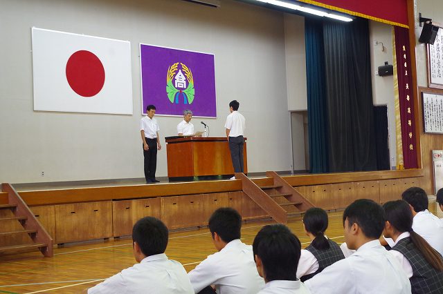 校長講話では、夏季休業中の出来事や2学期について話をされました。