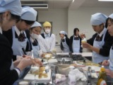 食農科学科のフードデザインを受講している3年生で担任の先生と副担任の先生をお呼びして食事会をしました。2時間という短い時間で供応食を作るのは大変でしたがよくできました。