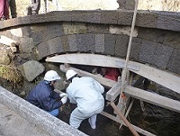 石張りの様子です。割った石を正確に石橋に張っています。