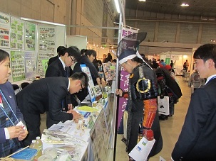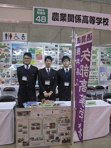矢部高校は初日の2月9日(火)に「緑科学科で開発した木工品」を出展し、多くの来場者に対して、緑科学科の生徒が木工品の説明を行いました。
