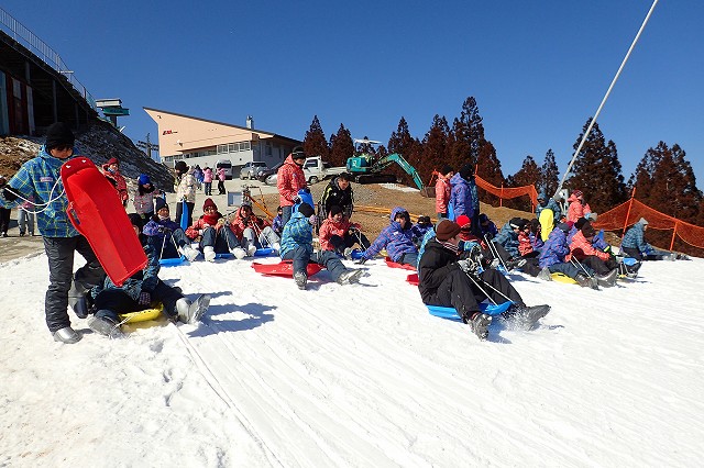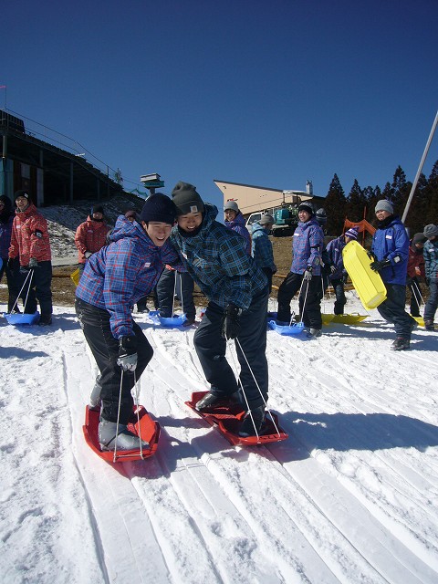 スキーができない代わりに全力でソリで滑る生徒たち!