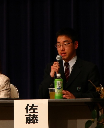 生徒会長の佐藤君がパネラーとして、男女共同参画社会について、高校生としての意見を地域の方々の前で堂々と発表してくれました。