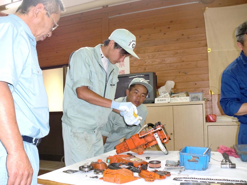 地域林業実践体験推進事業(3日目)では、製材品の流通、製材工程などの視察研修とチェンソー分解組立体験研修が実施されました。