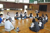 全校生徒が体育館に集まり、担任はもとより全職員が一緒に昼食をとるなかで、
