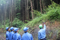 今日は、鍛冶床演習林で林内の散策と下刈りの実習を行いました。