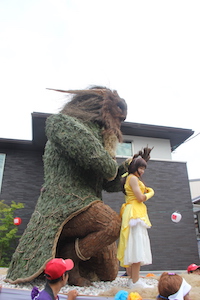 美女(ベル)に扮した寺岡君は野獣と共に台車に乗り町内をまわり、来場者に大変好評でした。