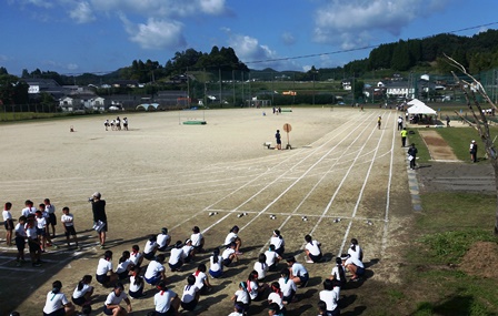 本校グラウンドで山都町内小学生の陸上記録会が開催されています。