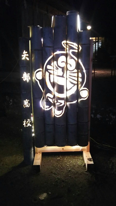 緑科学科3年生で製作した竹灯籠を大晦日から元旦にかけて、男成神社に展示しました。