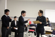 今年度の発表会は実物発表を行い、実際に試作品を試食していただきました。