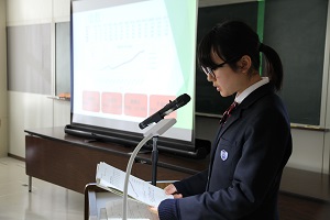 中学校の先生方や地域の方々など外部からも多くの方が参観に来ていただき、緊張した面持ちでしたが、どの生徒も研究の成果を堂々と発表することができました。
