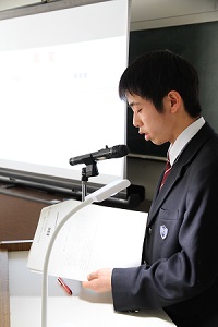 講演会の最後に緑科学科2年の小田君が謝辞を述べました。