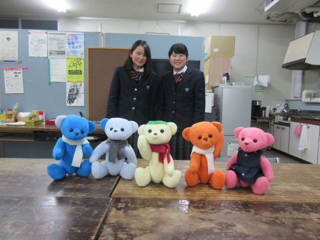 かわいいでしょう?食農科学科の3年生が家庭科の授業で作ったぬいぐるみです。