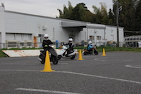 昨日、運転免許交付を受けた生徒が所有するスクーターを持参して行います。