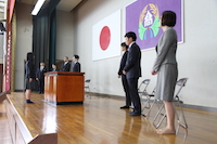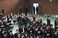 来賓・保護者、新2・3年生の盛大な拍手のなか、