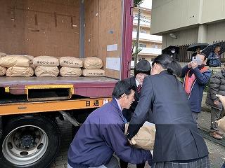 1月12日(土)熊本市中央区の古町小学校にて、アジア・アフリカ支援米の出発式に食農科学科1年から4名の生徒が参加しました。