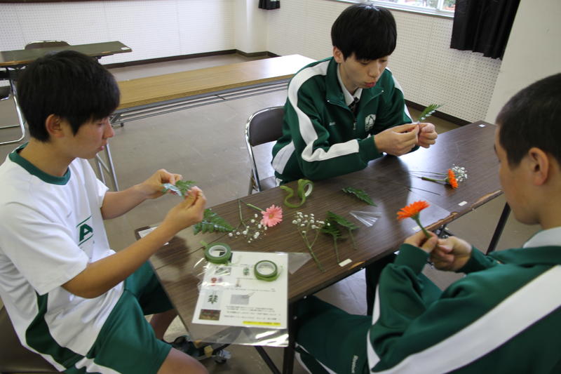 食農科学科の1、2年生は卒業生の為にコサージュを作りました。