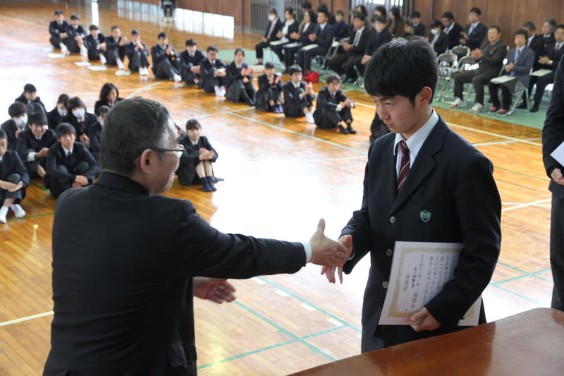 3学期に部活動の大会で入賞した生徒や各種検定に合格した生徒の表彰式を実施しました。