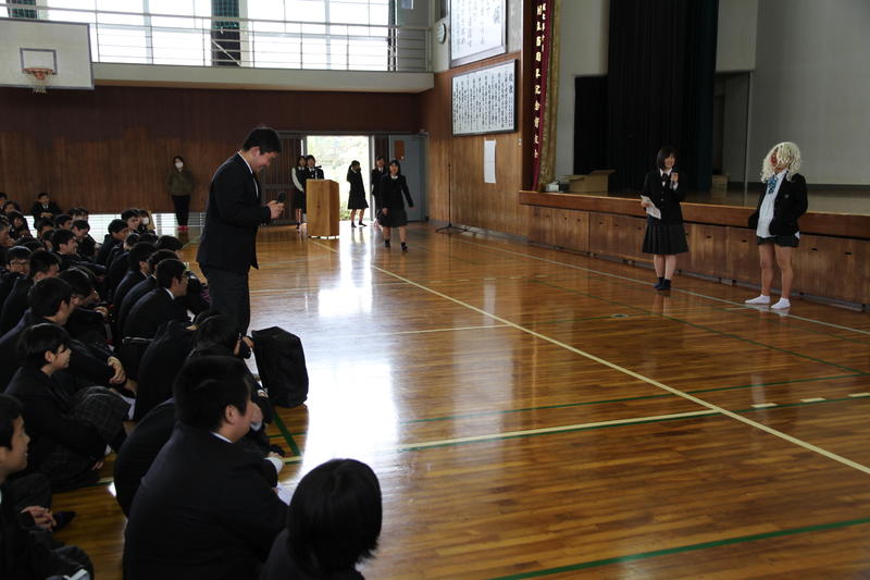 担任の先生より生徒・保護者に向けた挨拶などがありました。